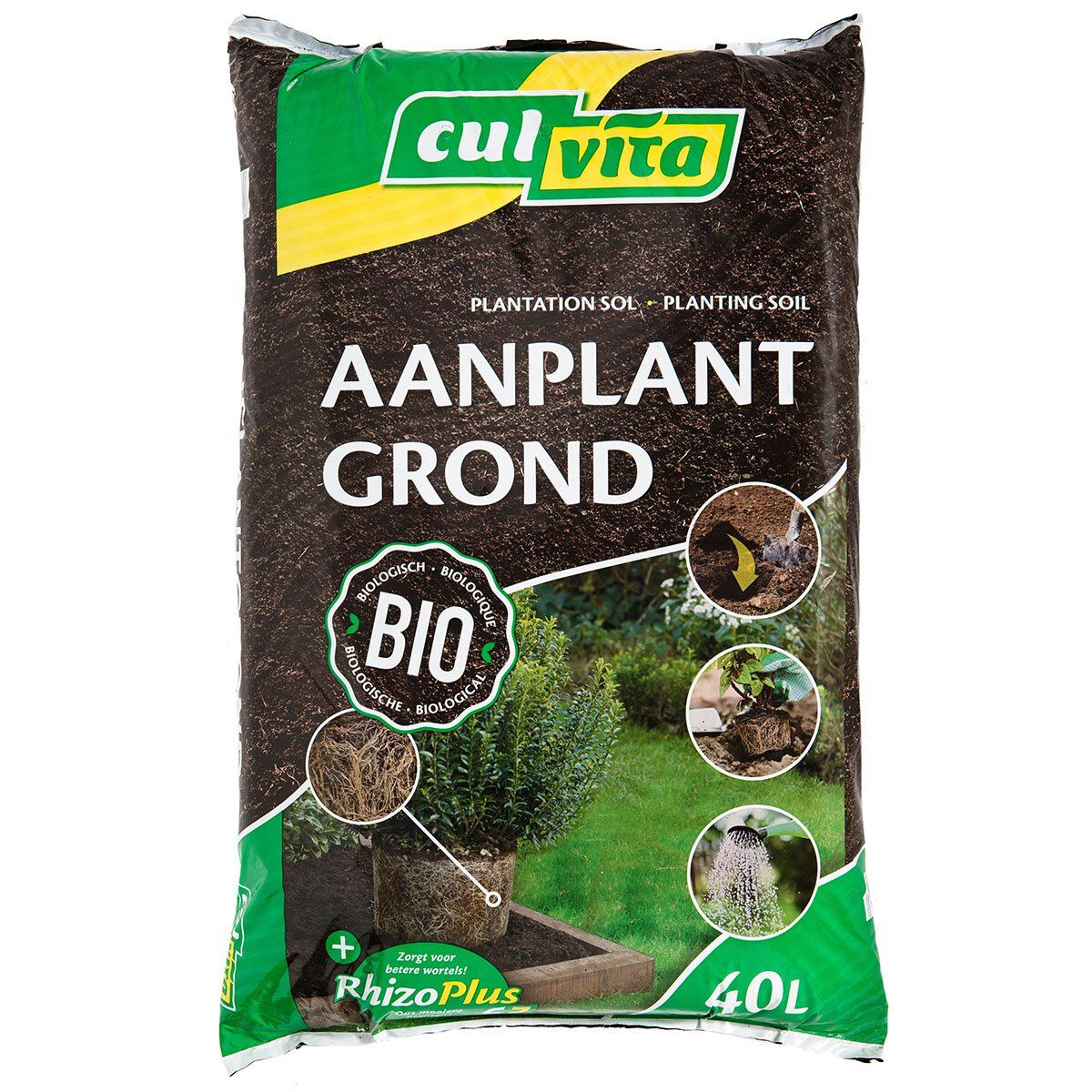Bij het aanplanten van bomen en/of planten is het uiterst belangrijk dat de voedingsbodem voor de aanplant goed is. De aanplantgrond van Culvita is uniek door de toevoeging van het zelf ontwikkelde Rhizoplus. Dit is een mengsel van mycorrhizae, bacteriën en schimmels. Hiermee wordt het bodemleven verrijkt, zodat de bodemstructuur en wortelvorming verbetert. Ook?bevordert deze aanplantgrond een snelle inworteling en een goede doorgroei.