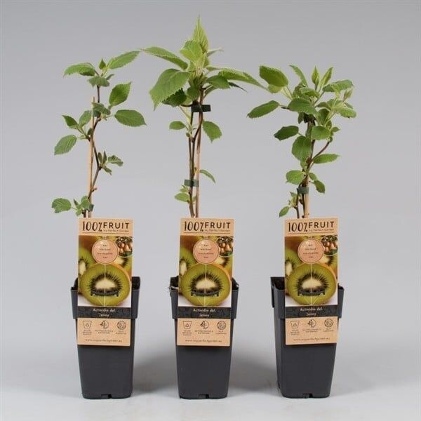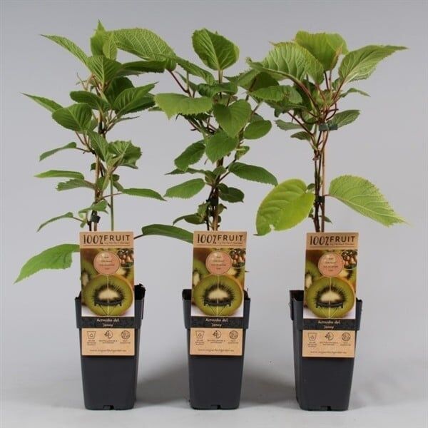 Actinidia Jenny is een zelf bestuivende kiwi. Deze soort heeft zowel mannelijke als vrouwelijke bloemen aan 1 plant en geeft kleine tot middelgrote kiwi’s met lekkere frisse smaak.