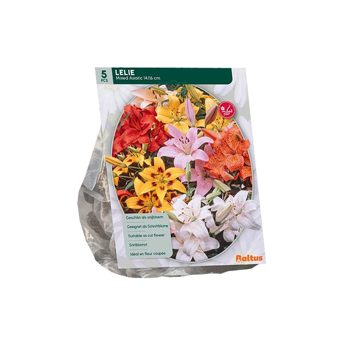 Lelie Oriental is een erg populair leliesoort. Van juni tot augustus bloeit deze met kleurrijke en sierlijke bloemen. Het kleurenpalet van de oriental is heel divers; wit, geel, roze, rood en oranje. In tegenstelling tot veel andere lelie soorten geeft de lelie oriental voorkeur aan iets zuurdere grond. Dit is makkelijk te realiseren door wat tuinturf aan het plantgat toe te voegen. Ook staat de lelie graag op een plek in de zon. Eenmaal goed gesetteld is het een goede winterharde plant. Lelie oriental kan het beste in het voorjaar aangeplant worden. Ze zijn leverbaar vanaf november tot en met maart. De verpakking bevat 5 leliebollen.