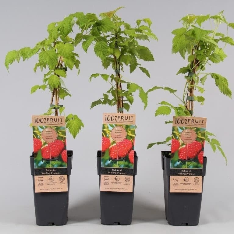 Rubus idaeus Malling Promise is een zachte framboos met een heerlijke aroma. Deze framboos draagt op eenjarig hout, knip daarom na de oogst de takken weg die dit jaar gedragen hebben en selecteer voor volgend jaar de goede stengels alvast. Deze struik is een krachtige groeier, geeft veel jonge scheuten en moet aangebonden worden.